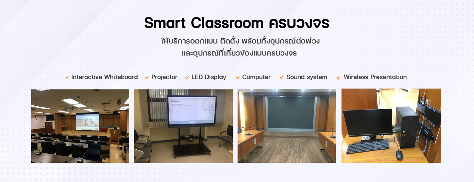 บริการให้คำปรึกษา ออกแบบ จัดหาอุปกรณ์ และติดตั้งห้องเรียนอัจฉริยะ แบบครบวงจร Interactive whiteboard, LED Display, Projector, Computer, Wireless Presentation and Sound system